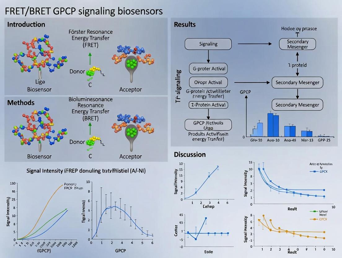 This comprehensive guide explores FRET and BRET biosensors for monitoring GPCR signaling dynamics in live cells. We cover the foundational principles of these resonance energy transfer technologies, detailing methodological approaches for real-time measurement of second messengers, conformational changes, and protein-protein interactions. The article provides practical troubleshooting advice, optimization strategies for signal-to-noise ratio and specificity, and a comparative analysis of sensor validation techniques. Designed for researchers and drug development professionals, this resource synthesizes current best practices to enable robust, quantitative analysis of GPCR pharmacology and accelerate therapeutic discovery.
