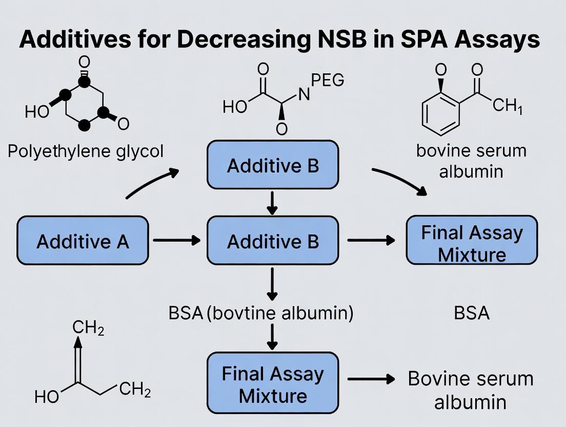 This article provides a detailed, expert-level overview of strategies and chemical additives used to minimize non-specific binding (NSB) in Scintillation Proximity Assays (SPAs).
