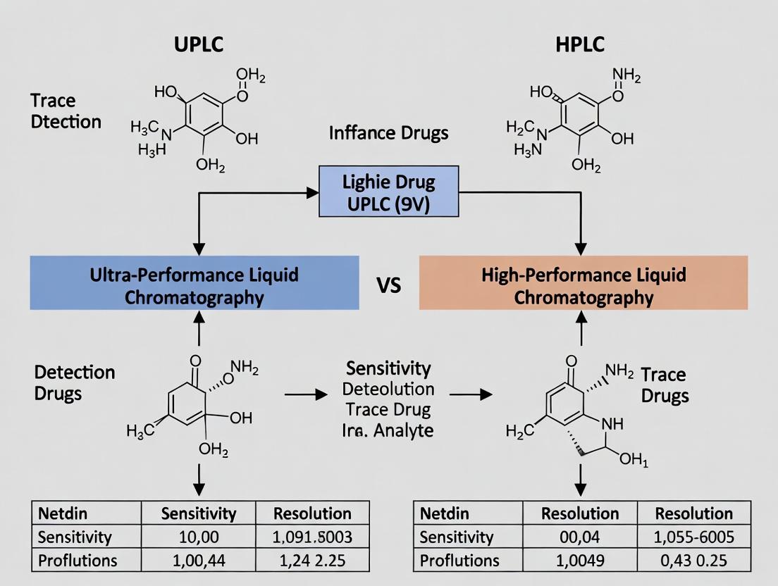 This comparison guide objectively evaluates the performance of High-Performance Liquid Chromatography (HPLC) and Ultra-High-Performance Liquid Chromatography (UPLC) within the critical context of sensitivity in trace drug detection research.