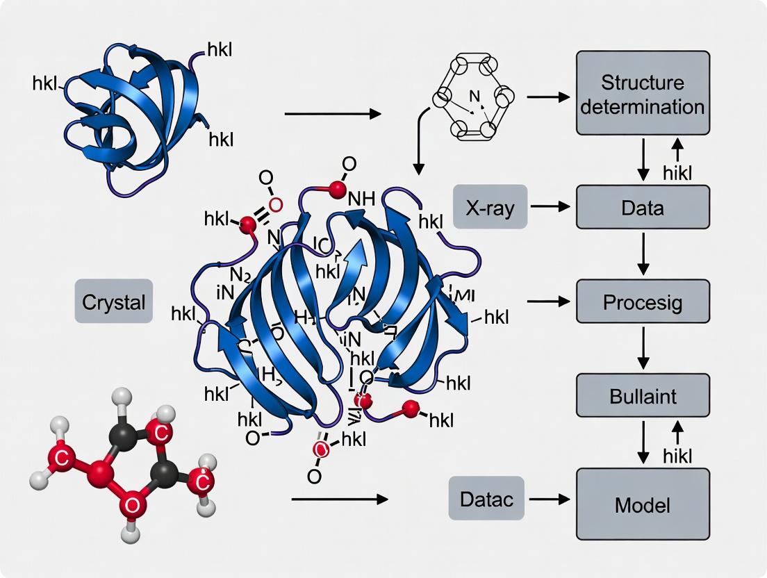 Within structural biology research, particularly for drug discovery targeting G-protein-coupled receptors (GPCRs) and other membrane proteins, X-ray crystallography remains a cornerstone for determining high-resolution three-dimensional structures. This process hinges on two fundamental physical principles: the generation of a diffraction pattern from a crystalline sample and the subsequent solution of the crystallographic phase problem to reconstruct an electron density map. These application notes detail the essential protocols and current methodologies to navigate from purified protein to a refined atomic model.